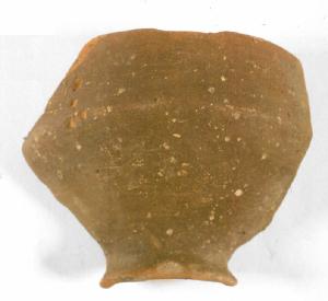 Orlo leggermente ingrossato arrotondato, labbro leggermente rientrante a profilo rettilineo, carena netta, vasca troncoconica, profonda, piede ad anello. Due scanalature sul labbro.