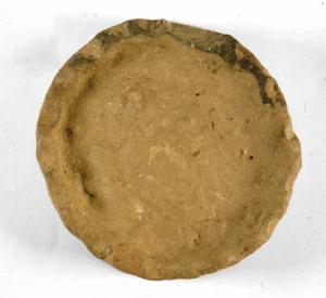 Piede ad anello leggermente troncoconico, spesso fondo piano, attacco della parete. Impressioni a tacche digitali sul piede.