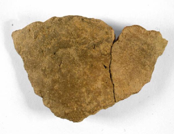 Orlo arrotondato, labbro indistinto, vasca troncoconica poco profonda.\nImpressioni a tacche irregolari sull'orlo.