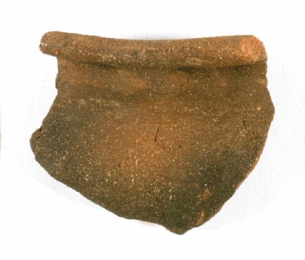 Orlo ingrossato arrotondato, labbro estroflesso a profilo curvilineo, spalla accentuata, corpo probabilmente globulare.