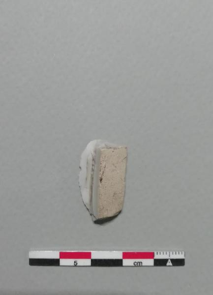 Raschiatoio latero-trasversale (R4) su lama in selce bianca con cortice. Ritocco semplice diretto sul lato sinistro e sulla parte distale.