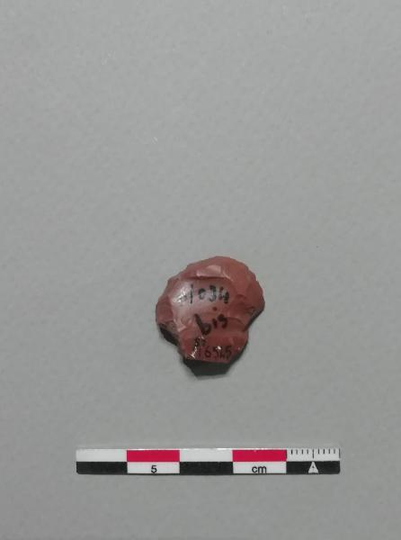 Grattatoio frontale corto (G3) in selce marrone. Ritocco semierto nella parte distale.