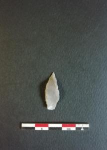 Punta a dorso totale (PD4) su scheggia in selce grigia. Ritocco erto totale lungo il lato sinistro.