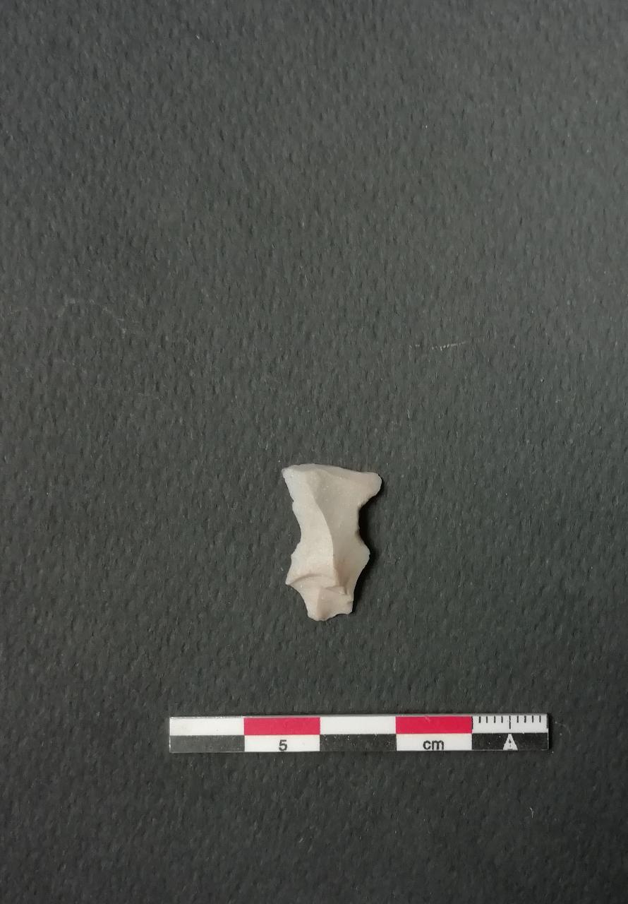 Bulino su ritocco a ritocco d'arresto (B9) su scheggia in selce bianca. Ritocco semplice marginale diretto su entrambi i lati a formare due incavi; sulla parte distale uno stacco di bulino.