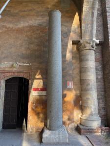 Fusto di colonna liscio senza decorazioni. Il fusto è stato invenuto demolendo le antiche cattedrali di Pavia, precisamente il secondo pilone di Santo Stefano. La notevole altezza del fusto testimonia la pertinenza a un edificio monumentale della città romana.