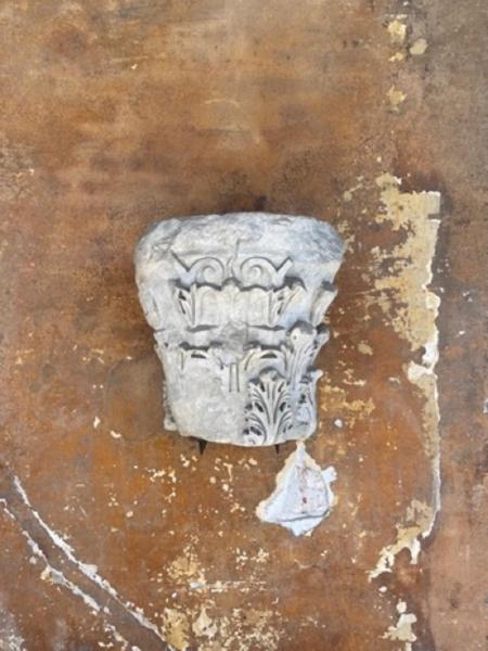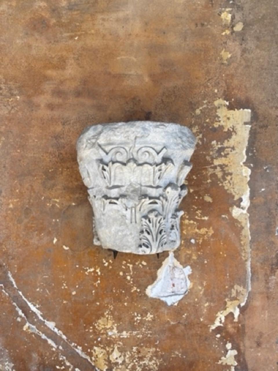 Il capitello corinzio asiatico è caratterizzato da foglie d'acanto aguzze, è una tipologia originaria delle province orientali dell'impero romano. Il pezzo proviene dall'ex monastero di San Dalmazio.