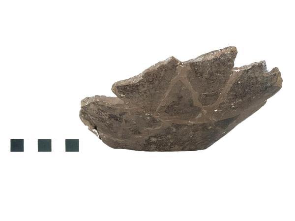 Fondo piano, pareti convesse. Impasto medio grigio, superficie lisciata opaca beige.