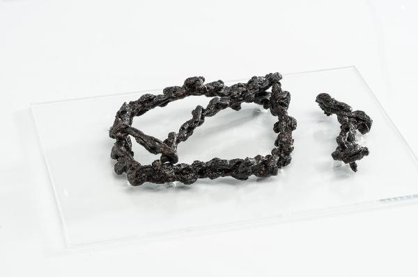 Catena reggi-spada ad anelli, in due pezzi: una catena corta, costituita da cinque elementi - con i due estremi desinenti ad anello - e una catena più lunga, con due elementi estremi, ad anello e a gancio.