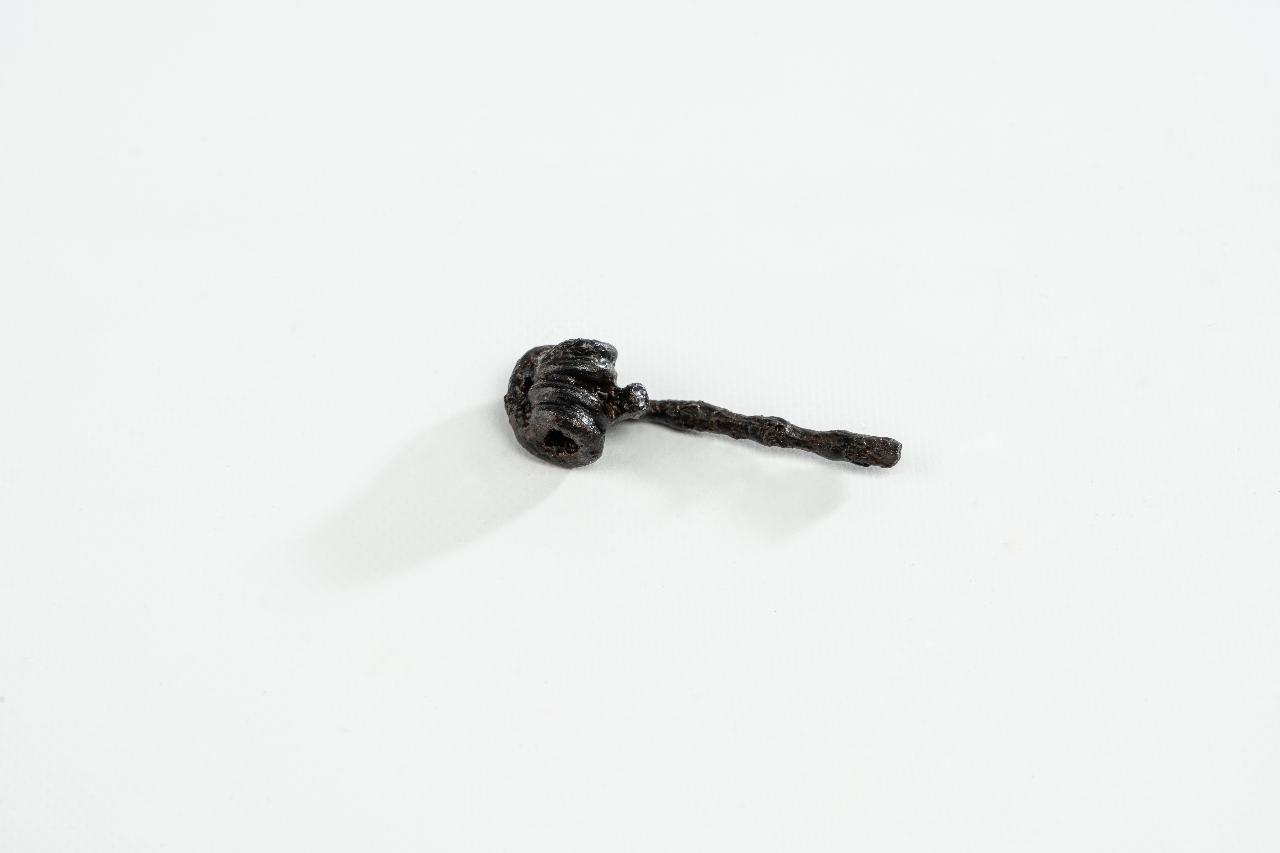 Frammento di fibula in ferro costituta da parte dell'arco e staffa agganciata alla sommità dell'arco.
