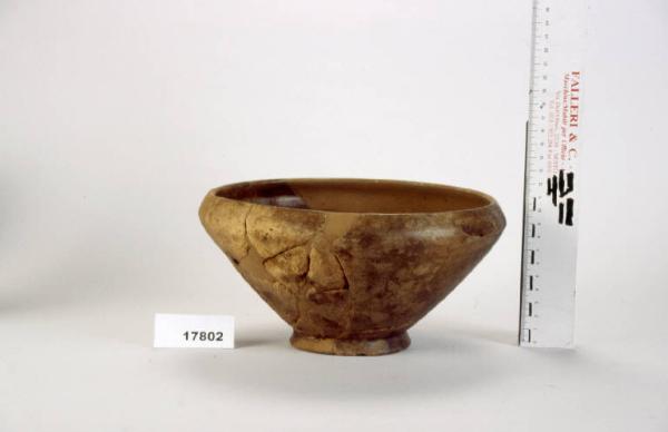 Ciotola coperchio ad orlo rientrante e spigolo vivo, vasca emisferica, basso piede.