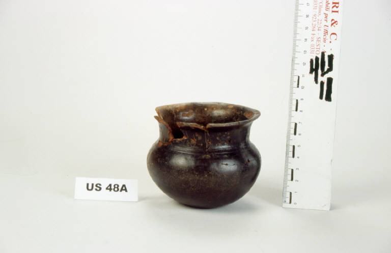 Bicchiere di forma globulare con orlo estroflesso e fondo concavo