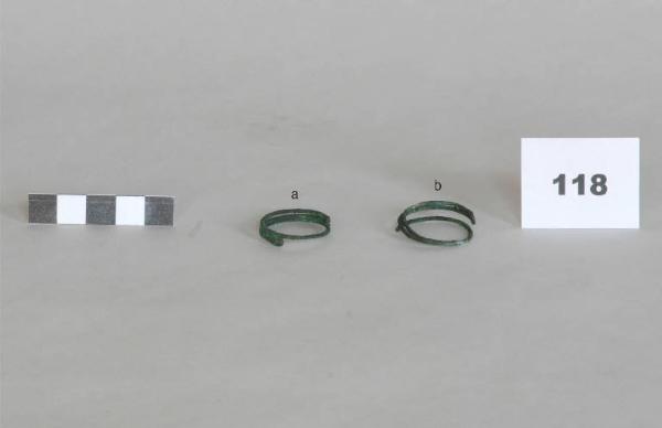 anelli in filo di bronzo a sezione circolare con una estremità ripiegata ad asola e senza due pezzi di spirale