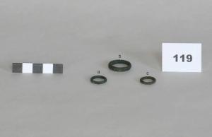 tre anelli, il primo ( b ) a sezione ovale, mentre il secondo ed il terzo ( a e c ) a sezione circolare