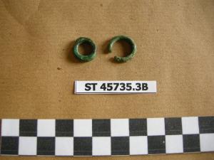 N. 2 anellini. 1) anellino con sezione quadrangolare a spigoli arrotondati; 2) anellino mutilo a sezione circolare