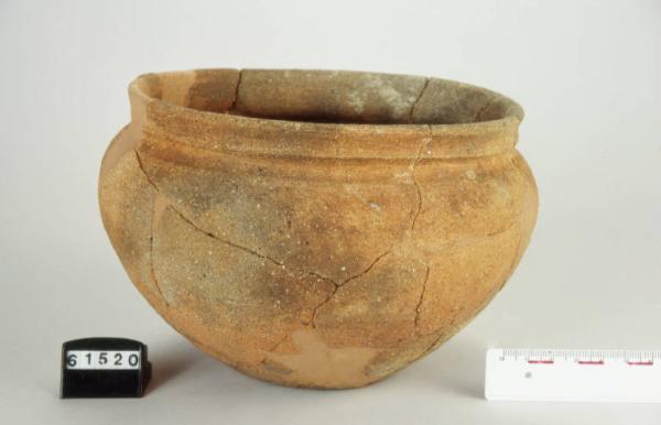 Olletta a forma ovoide, orlo diritto e fondo piano.
