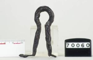Grappa in ferro a sezione quadrata piegata a L formante un anello.