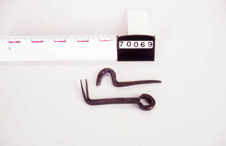 Grappa in ferro a sezione quadrata piegata a L formante un anello.