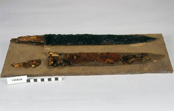 Fodero di scramasax con borchie e chiodini in bronzo e ribattini in ferro all' imboccatura