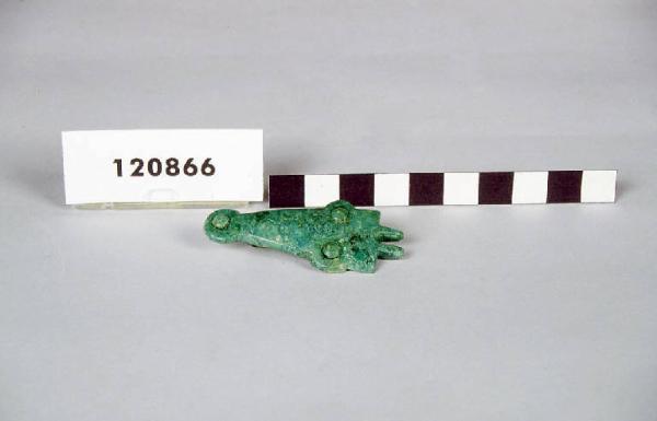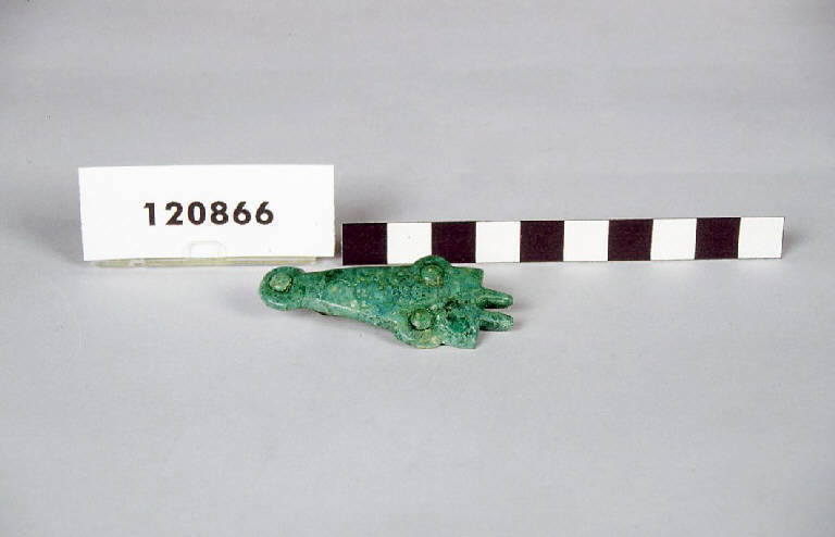 Controplacca triangolare in bronzo con terminazione posteriore a scudetto apicato