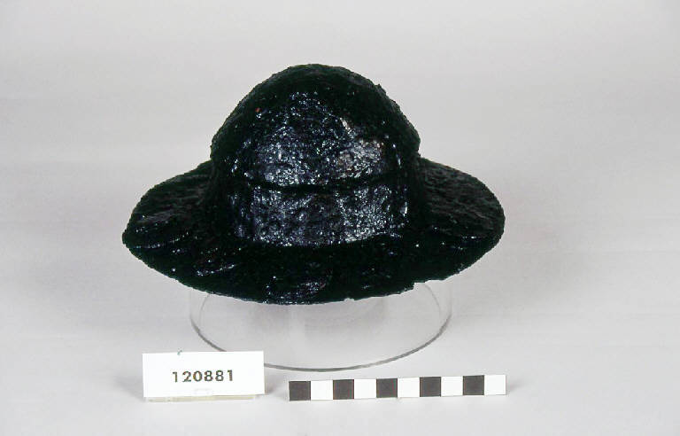 Umbone di scudo a tesa piatta, parte centrale troncoconica e cupola emisferica
