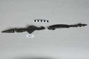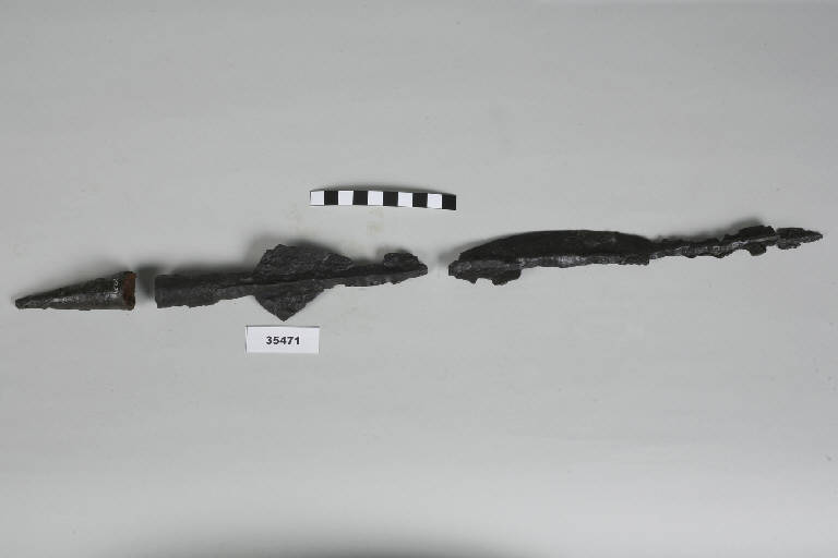 Cuspide di lancia con cannone troncoconico, lama con accentuata nervatura mediana a spigolo acuto su entrambe le facce