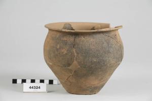 Olla ovoide di forma quasi biconica con orlo estroflesso e piccolo labbro verticale
