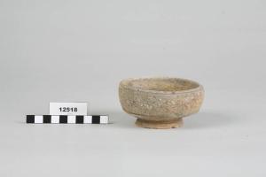 Coppetta con orlo ingrossato lievemente introflesso, parete arrotondata, piede a disco a sezione triangolare