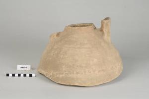 Parte superiore di anfora segata, corpo ovoide allungato terminante in un corto puntale.