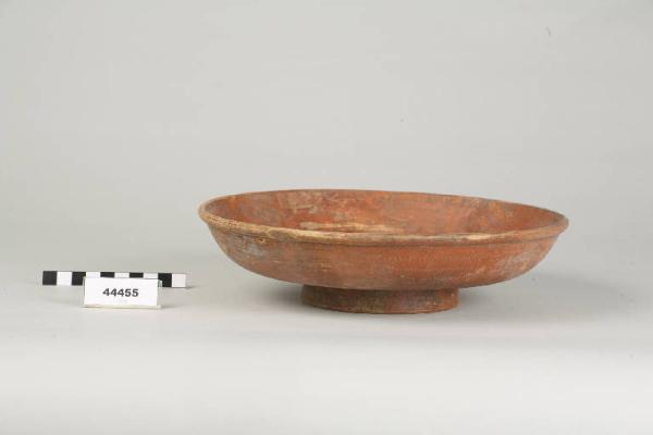 Patera in terra sigillata, orlo ingrossato e piede ad anello.