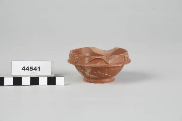 Coppetta in terra sigillata con listello orizzontale e piedino ad anello.