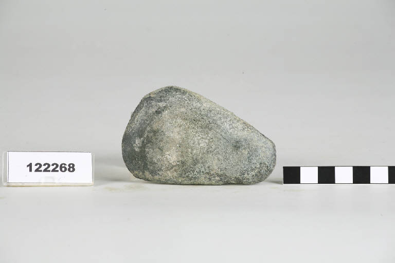 Ascia di forma subtriangolare con largo peduncolo arrotondato, taglio semicircolare e lari diritti