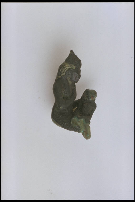 - NOTIZIE STORICO CRITICHE L'opera fa parte della raccolta egizia Giuseppe Acerbi (Castelgoffredo 1773 - 1846), costituita da reperti archeologici selezionati dall'erudito e scienziato naturalista mantovano - nominato nel 1826 Console Generale d'Austria in Egitto - tra Alessandria e Assuan, nella seconda metà degli anni Venti del XIX secolo. Entrata a far parte ufficialmente delle collezioni comunali di Mantova con il lascito di Agostino Zanelli, nipote ed unico erede dell'Acerbi, nel 1876, la raccolta ha conosciuto differenti collocazioni nel corso del tempo, fino all'attuale.\nL'esemplare é compreso nel gruppo di statuette votive - prevalentemente in bronzo - tipiche del periodo compreso tra la XXVI dinastia e l'età tolemaico-romana e rappresentanti l'intero pantheon egizio. L'attitudine della dea, in atto di allattare Horus assiso sulle ginocchia, é la medesima degli esemplari n. catt. 20 - 23, benché modellato e lineamenti siano qui peggiormente conservati.