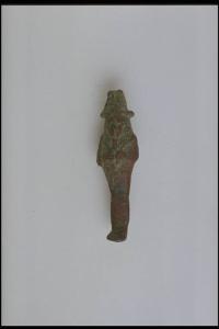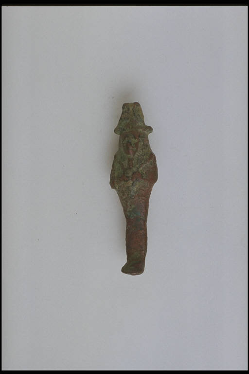 - NOTIZIE STORICO CRITICHE L'opera fa parte della raccolta egizia Giuseppe Acerbi (Castelgoffredo 1773 - 1846), costituita da reperti archeologici selezionati dall'erudito e scienziato naturalista mantovano - nominato nel 1826 Console Generale d'Austria in Egitto - tra Alessandria e Assuan, nella seconda metà degli anni Venti del XIX secolo. Entrata a far parte ufficialmente delle collezioni comunali di Mantova con il lascito di Agostino Zanelli, nipote ed unico erede dell'Acerbi, nel 1876, la raccolta ha conosciuto differenti collocazioni nel corso del tempo, fino all'attuale.\nL'esemplare é compreso nel gruppo di statuette votive - prevalentemente in bronzo - tipiche del periodo compreso tra la XXVI dinastia e l'età tolemaico-romana e rappresentanti l'intero pantheon egizio. Figura stante col corpo crisaliforme. Il capo è ornato dal diadema formato di corna d'ariete e due piume ricurve proprio del dio Ptah-Tatenen.