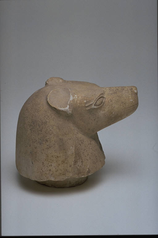 - NOTIZIE STORICO CRITICHE L'opera fa parte della raccolta egizia Giuseppe Acerbi (Castelgoffredo 1773 - 1846), costituita da reperti archeologici selezionati dall'erudito e scienziato naturalista mantovano - nominato nel 1826 Console Generale d'Austria in Egitto - tra Alessandria e Assuan, nella seconda metà degli anni Venti del XIX secolo. Entrata a far parte ufficialmente delle collezioni comunali di Mantova con il lascito di Agostino Zanelli, nipote ed unico erede dell'Acerbi, nel 1876, la raccolta ha conosciuto differenti collocazioni nel corso del tempo, fino all'attuale.\nIl coperchio di canopo - contenitore destinato a proteggere le viscere del defunto - é modellato a testa di sciacallo, propria del dio Duamutef. Se naso e bocca risultano di modellato sommario, più accurata é invece la descrizione degli occhi, incorniciati da bistro e quasi di forma umana. Il collo è coperto dalle parti ricadenti della parrucca. Base circolare con sporgenza cilindrica.