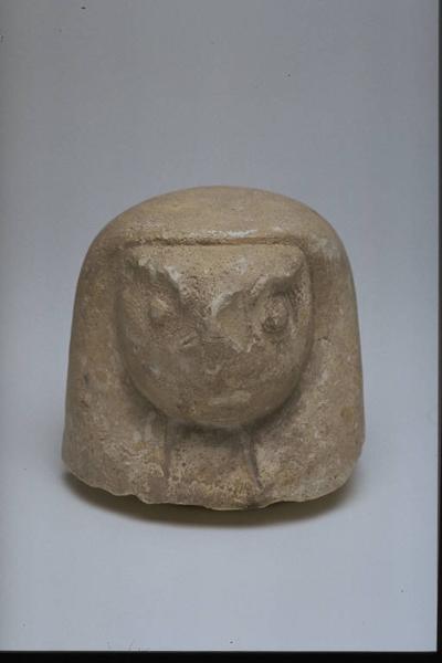 - NOTIZIE STORICO CRITICHE L'opera fa parte della raccolta egizia Giuseppe Acerbi (Castelgoffredo 1773 - 1846), costituita da reperti archeologici selezionati dall'erudito e scienziato naturalista mantovano - nominato nel 1826 Console Generale d'Austria in Egitto - tra Alessandria e Assuan, nella seconda metà degli anni Venti del XIX secolo. Entrata a far parte ufficialmente delle collezioni comunali di Mantova con il lascito di Agostino Zanelli, nipote ed unico erede dell'Acerbi, nel 1876, la raccolta ha conosciuto differenti collocazioni nel corso del tempo, fino all'attuale.\nIl coperchio di canopo - contenitore destinato a proteggere le viscere del defunto - é modellato a testa di falco, propia del dio Kebehsenuf. Un'ampia parrucca incornicia il volto della divinità, le cui pupille erano originariamente decorate di nero, come si intuisce dalle tracce di colore attorno all'occhio sinistro. Il modellato, morbido e plastico, rimanda ai Tempi Tardi. La base circolare è irregolare.