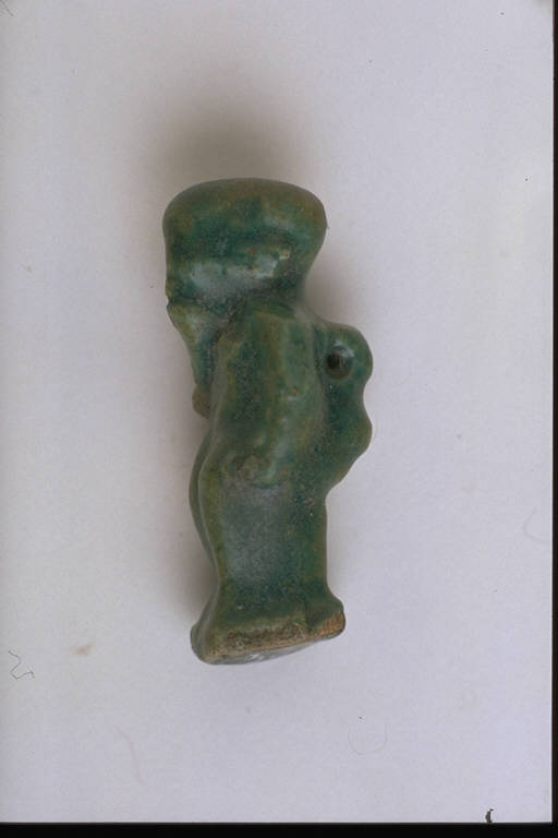 - NOTIZIE STORICO CRITICHE L'opera fa parte della raccolta egizia Giuseppe Acerbi (Castelgoffredo 1773 - 1846), costituita da reperti archeologici selezionati dall'erudito e scienziato naturalista mantovano - nominato nel 1826 Console Generale d'Austria in Egitto - tra Alessandria e Assuan, nella seconda metà degli anni Venti del XIX secolo. Entrata a far parte ufficialmente delle collezioni comunali di Mantova con il lascito di Agostino Zanelli, nipote ed unico erede dell'Acerbi, nel 1876, la raccolta ha conosciuto differenti collocazioni nel corso del tempo, fino all'attuale.\nL'amuleto rientra in un cospicuo gruppo di oggetti analoghi per tipologia e funzione (apotropaica/magica) e, tra questi, nella serie di amuleti raffiguranti divinità. Arpocrate, dio Bambino del Delta, é rappresentato secondo iconografia consueta: ignudo, con il cranio in parte rasato e una ciocca di capelli ricadente sulla spalla destra, l'indice destro portato alla bocca. La figura é assisa, con piccola base e occhiello dorsale.