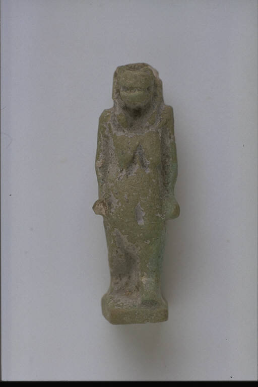 - NOTIZIE STORICO CRITICHE L'opera fa parte della raccolta egizia Giuseppe Acerbi (Castelgoffredo 1773 - 1846), costituita da reperti archeologici selezionati dall'erudito e scienziato naturalista mantovano - nominato nel 1826 Console Generale d'Austria in Egitto - tra Alessandria e Assuan, nella seconda metà degli anni Venti del XIX secolo. Entrata a far parte ufficialmente delle collezioni comunali di Mantova con il lascito di Agostino Zanelli, nipote ed unico erede dell'Acerbi, nel 1876, la raccolta ha conosciuto differenti collocazioni nel corso del tempo, fino all'attuale.\nL'amuleto rientra in un cospicuo gruppo di oggetti analoghi per tipologia e funzione (apotropaica/magica) e, tra questi, nella serie di amuleti raffiguranti divinità. La statuetta rappresenta Tueris, dea sotto forma di ippopotamo ritto sulle zampe posteriori, con braccia e mammelle femminili, protettrice delle puerpere. L'amuleto è modellato piuttosto sommariamente. Presenti un pilastro dorsale e una base rettangolare.