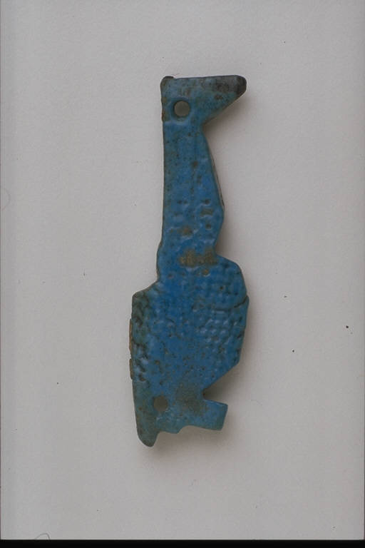 - NOTIZIE STORICO CRITICHE L'opera fa parte della raccolta egizia Giuseppe Acerbi (Castelgoffredo 1773 - 1846), costituita da reperti archeologici selezionati dall'erudito e scienziato naturalista mantovano - nominato nel 1826 Console Generale d'Austria in Egitto - tra Alessandria e Assuan, nella seconda metà degli anni Venti del XIX secolo. Entrata a far parte ufficialmente delle collezioni comunali di Mantova con il lascito di Agostino Zanelli, nipote ed unico erede dell'Acerbi, nel 1876, la raccolta ha conosciuto differenti collocazioni nel corso del tempo, fino all'attuale.\nL'amuleto rientra in un cospicuo gruppo di oggetti analoghi per tipologia e funzione (apotropaica/magica) e, tra questi, nella serie di amuleti raffiguranti divinità. Il genio a testa di sciacallo Duamutef - protettore delle viscere del defunto - é qui rappresentato nel solo profilo; presenti due piccoli fori all'estremità della testa e dei piedi.