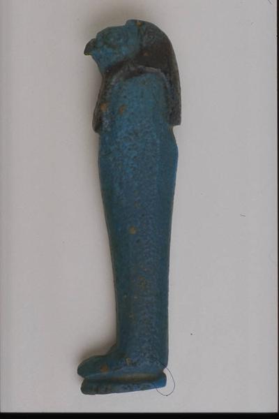 - NOTIZIE STORICO CRITICHE L'opera fa parte della raccolta egizia Giuseppe Acerbi (Castelgoffredo 1773 - 1846), costituita da reperti archeologici selezionati dall'erudito e scienziato naturalista mantovano - nominato nel 1826 Console Generale d'Austria in Egitto - tra Alessandria e Assuan, nella seconda metà degli anni Venti del XIX secolo. Entrata a far parte ufficialmente delle collezioni comunali di Mantova con il lascito di Agostino Zanelli, nipote ed unico erede dell'Acerbi, nel 1876, la raccolta ha conosciuto differenti collocazioni nel corso del tempo, fino all'attuale.\nL'amuleto rientra in un cospicuo gruppo di oggetti analoghi per tipologia e funzione (apotropaica/magica) e, tra questi, nella serie di amuleti raffiguranti divinità. Il genio a testa di falco Kebehsenuf presenta parrucca e becco definiti da dettagli colorati in nero; l'amuleto é modellato solo da una parte ed é attraversato da un piccolo foro nel senso della lunghezza.