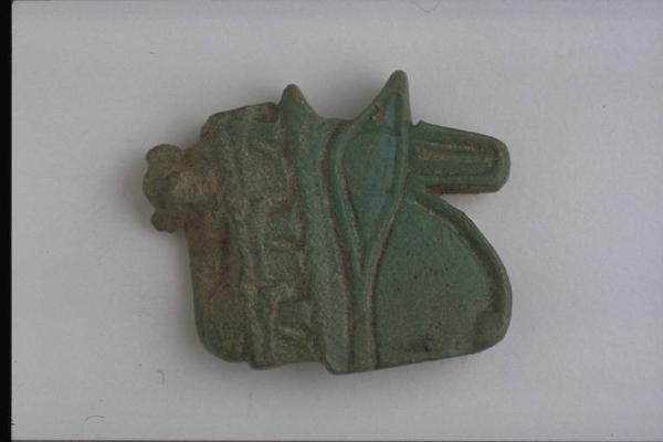 - NOTIZIE STORICO CRITICHE L'opera fa parte della raccolta egizia Giuseppe Acerbi (Castelgoffredo 1773 - 1846), costituita da reperti archeologici selezionati dall'erudito e scienziato naturalista mantovano - nominato nel 1826 Console Generale d'Austria in Egitto - tra Alessandria e Assuan, nella seconda metà degli anni Venti del XIX secolo. Entrata a far parte ufficialmente delle collezioni comunali di Mantova con il lascito di Agostino Zanelli, nipote ed unico erede dell'Acerbi, nel 1876, la raccolta ha conosciuto differenti collocazioni nel corso del tempo, fino all'attuale.\nL'amuleto rientra in un cospicuo gruppo di oggetti analoghi per tipologia e funzione (apotropaica/magica) e, tra questi, nella serie di 36 amuleti raffiguranti simboli. L'occhio di Horus ("udat") rappresenta un occhio umano con i solchi lacrimali del falco e ha valore apotropaico o sanatore. L'amuleto é composto da un occhio con sopracciglio sormontato da un fregio di tre piccoli occhi, su cui poggia un leone. Lavorato su ambo le facce.