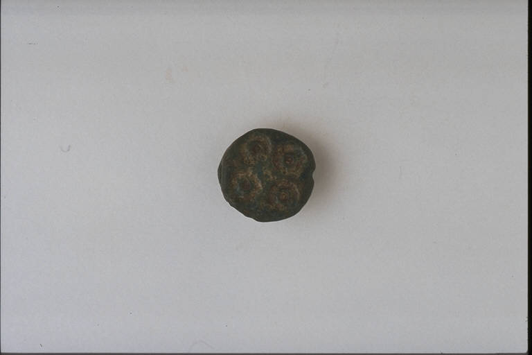 - NOTIZIE STORICO CRITICHE L'opera fa parte della raccolta egizia Giuseppe Acerbi (Castelgoffredo 1773 - 1846), costituita da reperti archeologici selezionati dall'erudito e scienziato naturalista mantovano - nominato nel 1826 Console Generale d'Austria in Egitto - tra Alessandria e Assuan, nella seconda metà degli anni Venti del XIX secolo. Entrata a far parte ufficialmente delle collezioni comunali di Mantova con il lascito di Agostino Zanelli, nipote ed unico erede dell'Acerbi, nel 1876, la raccolta ha conosciuto differenti collocazioni nel corso del tempo, fino all'attuale.\nIl pezzo rientra in un gruppo di cinque oggetti dalla probabile duplice funzione di sigilli/amuleti: più probabile, per questo esemplare, la funzione di ciondolo-sigillo. La forma a calotta presenta base con quattro cerchi concentrici incisi.