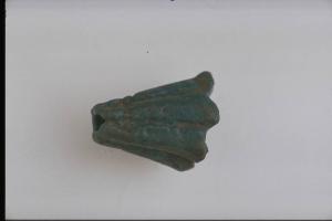 - NOTIZIE STORICO CRITICHE L'opera fa parte della raccolta egizia Giuseppe Acerbi (Castelgoffredo 1773 - 1846), costituita da reperti archeologici selezionati dall'erudito e scienziato naturalista mantovano - nominato nel 1826 Console Generale d'Austria in Egitto - tra Alessandria e Assuan, nella seconda metà degli anni Venti del XIX secolo. Entrata a far parte ufficialmente delle collezioni comunali di Mantova con il lascito di Agostino Zanelli, nipote ed unico erede dell'Acerbi, nel 1876, la raccolta ha conosciuto differenti collocazioni nel corso del tempo, fino all'attuale.\nIl pezzo rientra in un gruppo di sei elementi di ornamento personale: si tratta di un ciondolo a forma di fiore, formato da rosetta di forma conica con foro all'estremità. La sua funzione potrebbe essere di pendente per orecchino.