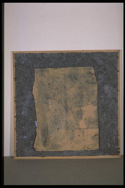 Carta ocra applicata sulla tela ricoperta di imbottitura grigia