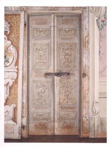 - NOTIZIE STORICO CRITICHE La porta ad anta unica racchiude una seconda porta a due battenti, con specchiature sui due lati.