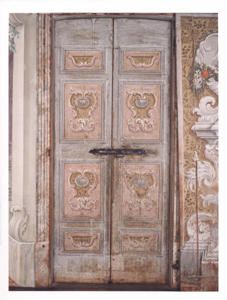 - NOTIZIE STORICO CRITICHE La porta ad anta unica racchiude una seconda porta a due battenti, con specchiature sui due lati.