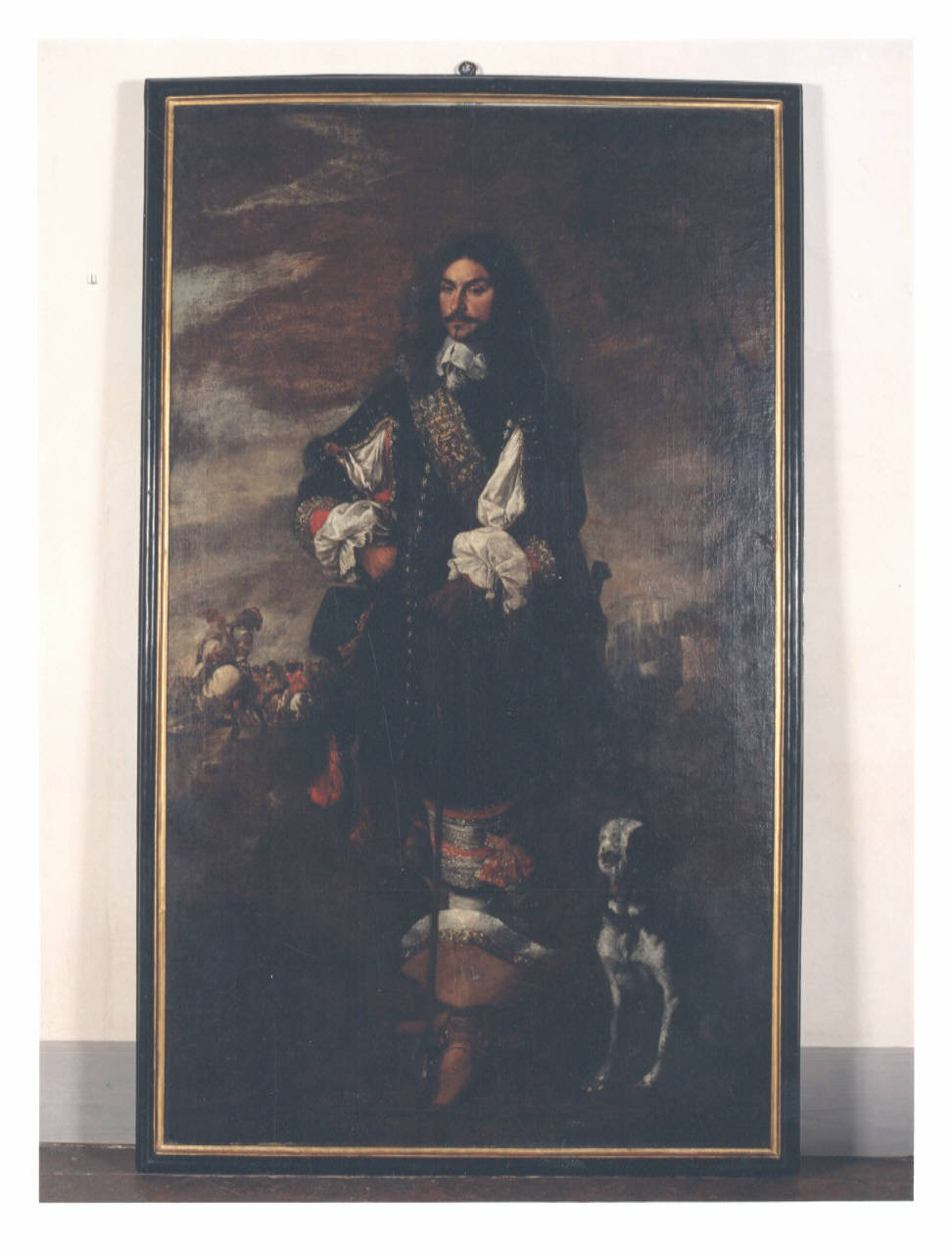 - NOTIZIE STORICO CRITICHE Questo ritratto è tradizionalmente attribuito al pittore francese Jacques Courtois detto il Borgognone. La grandiosità dell'immagine dipinta a figura intera, la scena di battaglia sullo sfondo, il pezzo di bravura del cane unito ad una cromia densa e pastosa evidenziano l'alta qualità dell'opera.