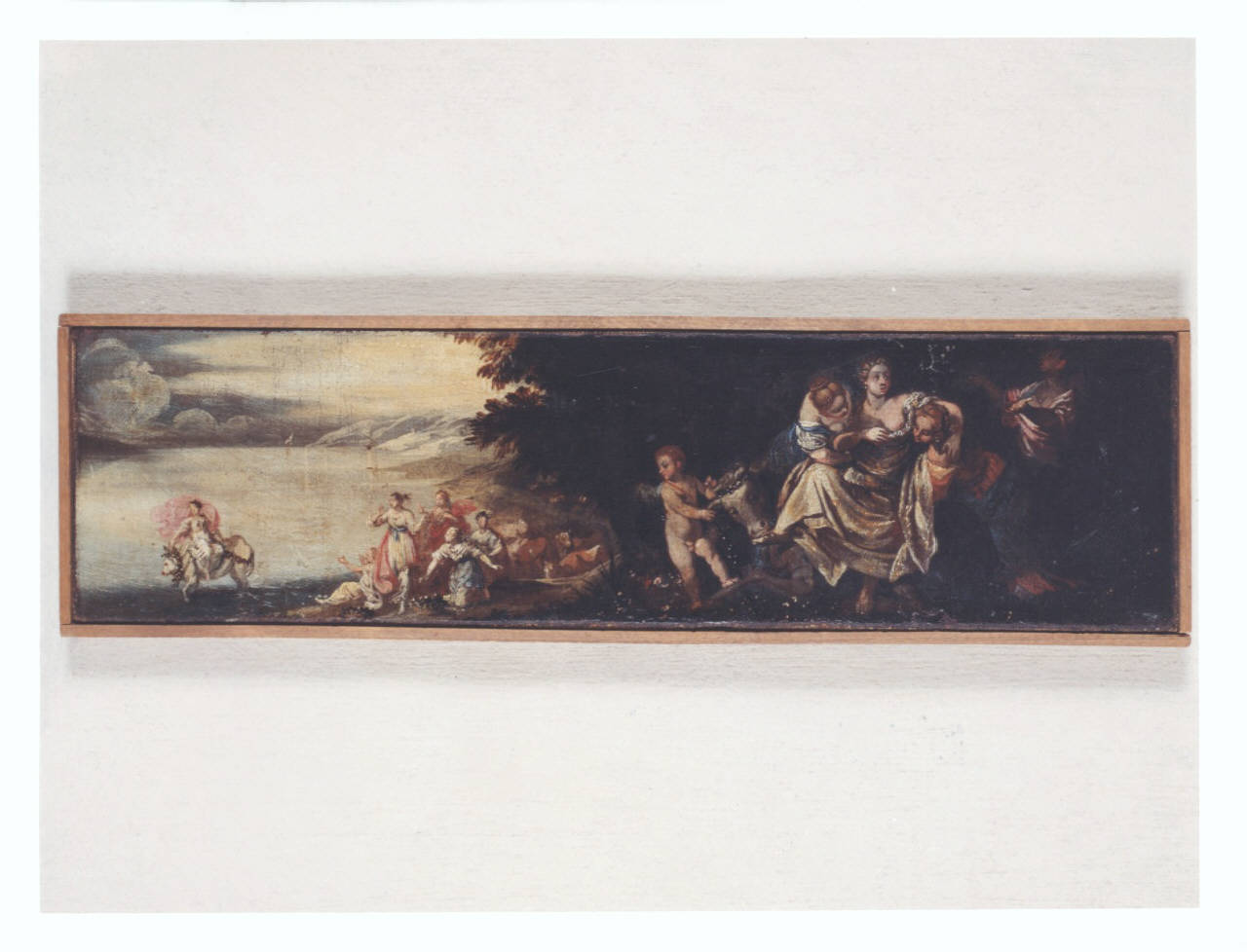 - NOTIZIE STORICO CRITICHE Questo piccolo dipinto, che probabilmente doveva costituire la predella in un'opera di maggiori dimensioni, raffigura il Ratto di Europa, qui nei due momenti precedenti al rapimento da parte di Giove. Nella parte sinistra del dipinto si nota infatti Europa sulla spiaggia mentre galoppa un toro, che altro non è che Giove, da lei inghirlandato di fiori, mentre le ancelle osservano la scena. A destra mentre scende dalla groppa del toro all'interno di un bosco. Piacevole il contrasto cromatico tra la parte luminosa costituita dal mare e gli alberi frondosi che formano una sorta di cortina scura ed impenetrabile.