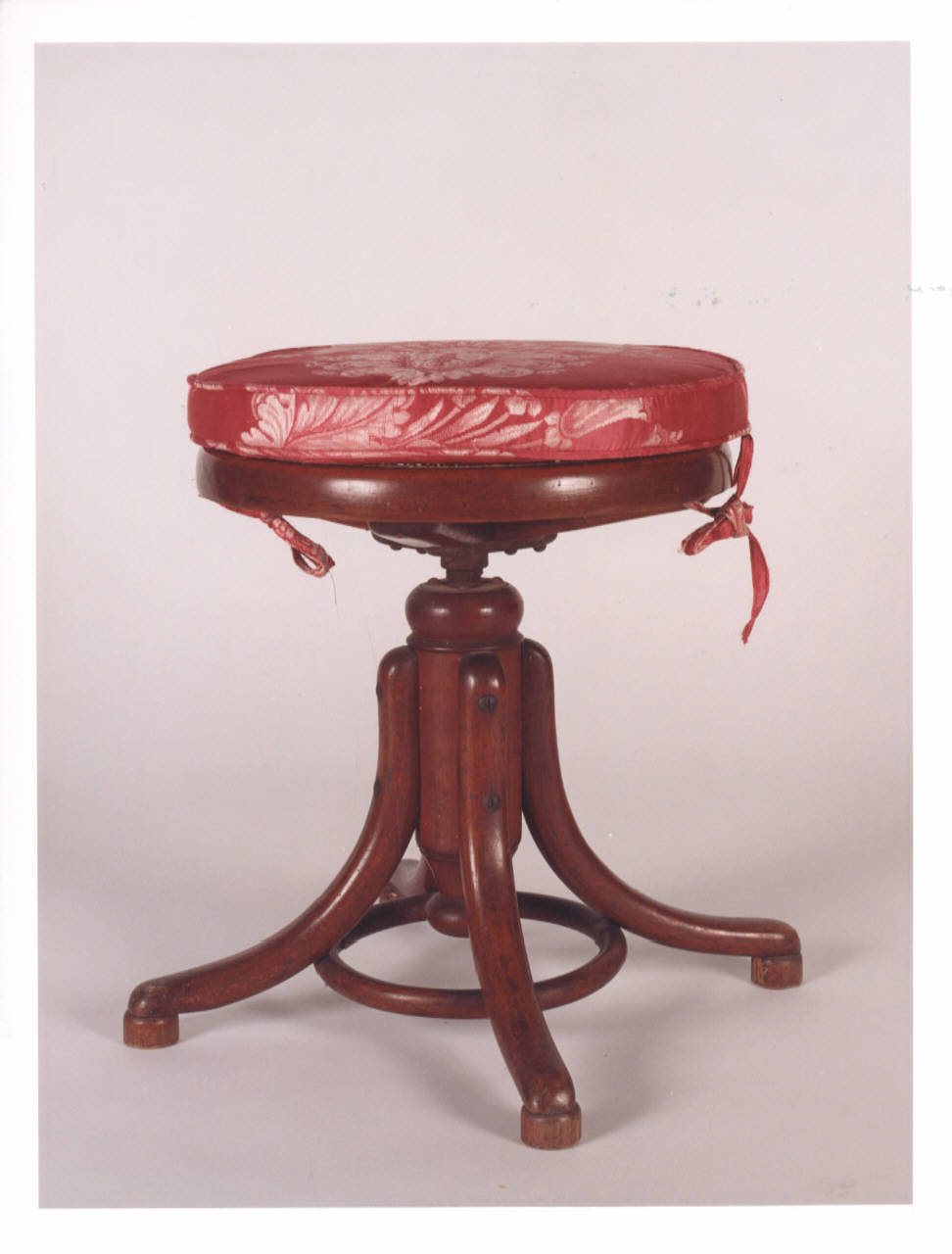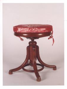- NOTIZIE STORICO CRITICHE Lo sgabello non è quello originario del pianoforte. Si tratta di un pezzo della produzione Thonet i cui cataloghi originari riportano l'oggetto definendolo: "Dreh-Stokerl...Music Stool...Tamburino con vite di ferro"