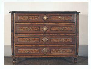 - NOTIZIE STORICO CRITICHE Imita il canterano seicentesco piemontese con intarsi in legno di frutto.