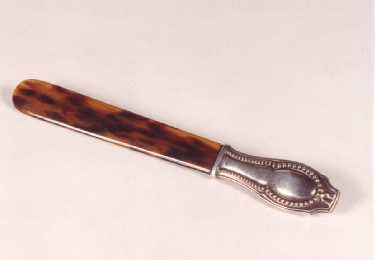 Tagliacarte con impugnatura sagomata e decorata da profilo perlinato